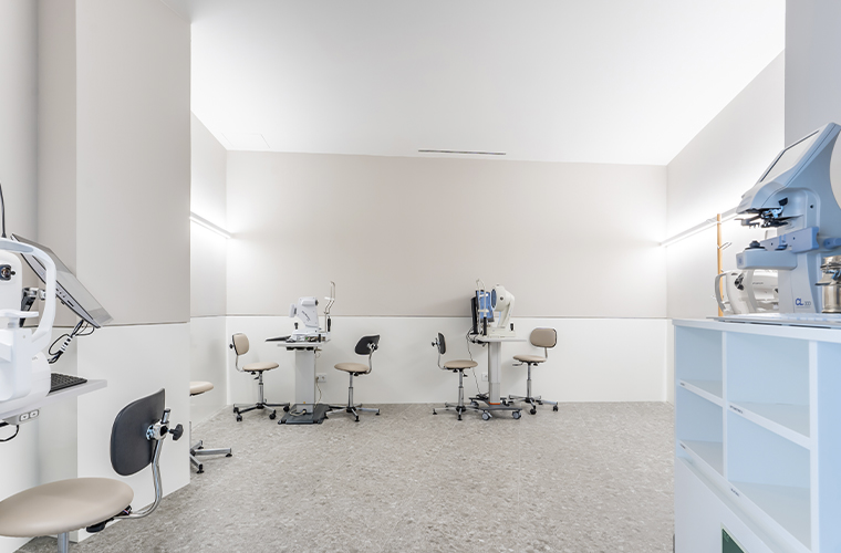 Esta clínica, que ha sido inaugurada en 2024, tiene una superficie de 172 m² repartidos entre dos consultas, una sala de espera y una salas de aparatos para la realización de pruebas oftalmológicas.