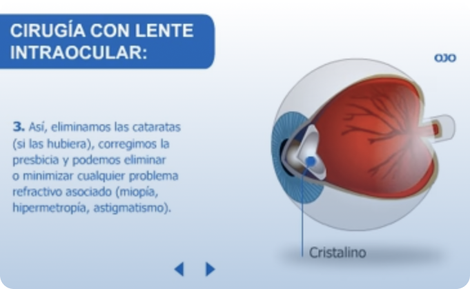 Para estas patologías la solución es el tratamiento con lente intraocular (también llamadas lentes pseudofáquicas). La operación consiste en extraer el cristalino dañado y sustituirlo por una lente intraocular, que hace la función de cristalino artificial.
